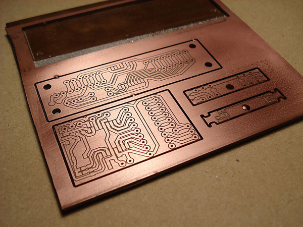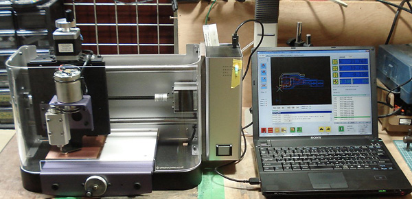 KitMill CIP100を使って各基板を作りました。(KitMill CIP100の制御コントローラー部分はL型部品を使って加工機本体の右側に固定したことで使いやすくなっています)