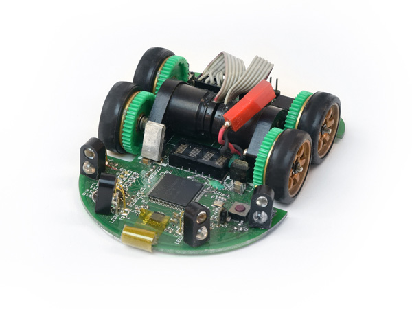 ※この写真は、からくり工房A:Mac様が「オリジナルマインド展示即売会2015」にお越しの際に当社スタッフが撮影させて頂いたものです。 ハード面のコンセプトは作りやすく走るDCマウス。よって外注(プリント以外)や特殊部品・特殊加工をせずにすむ設計をしました。ソフト面は今後数年間の開発を見越して改修・デバッグのしやすいアーキテクチャの開発を目標としました。