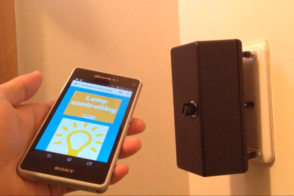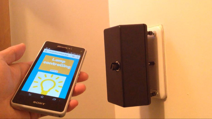 Wi-fiモジュールとソレノイドを用いてスマートフォンから遠隔電灯制御出来るデバイスを作ってみました。ブラウザ上のボタンを押すと、家にあるデバイスが電灯を操作する仕組みです。