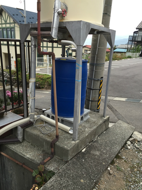 オーバーフローした温泉を蓄える2次タンクを温泉タンクの下に設置しました。