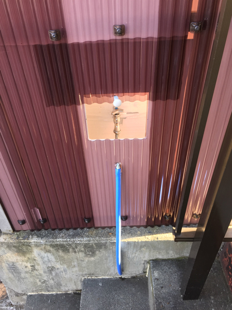 おまけの機能として、外で洗い物がしたい場合に、温泉が利用できるように蛇口を取り付けてあります。これは、家族にも喜ばれました。