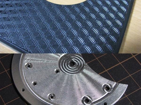 ケースの化粧板と文字板です。黒一色では味気ないので化粧板には組子細工でよく使われる『胡麻』模様を加工しています。文字板は針の視認性が悪かったの で、追加でギョーシェ彫りを行っています。どちらも切削パスを手書きして、V字カッターを走らせています。