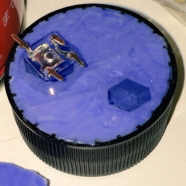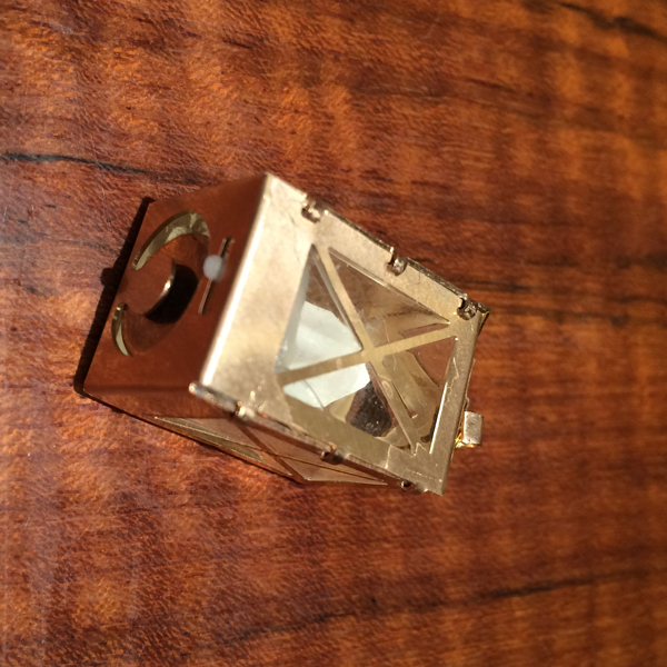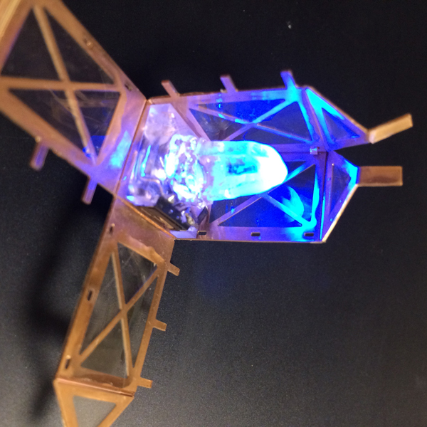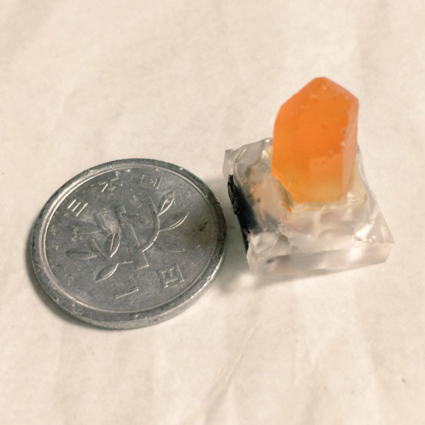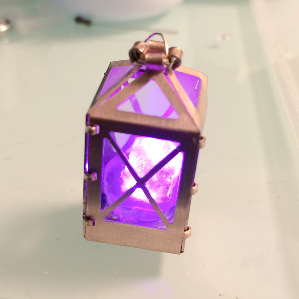 コンパクトでペンダントヘッドなどに利用できる超小型カンテラ(1/12サイズ)を製作しました。市販で最小のボタン電池(CR1025)を使って、この大きさでも連続100時間程度光るのがポイントです。なお、単純に明るくなるだけでは面白くないので、本物の水晶から型を取って、中のクリスタルが光るようにしました。