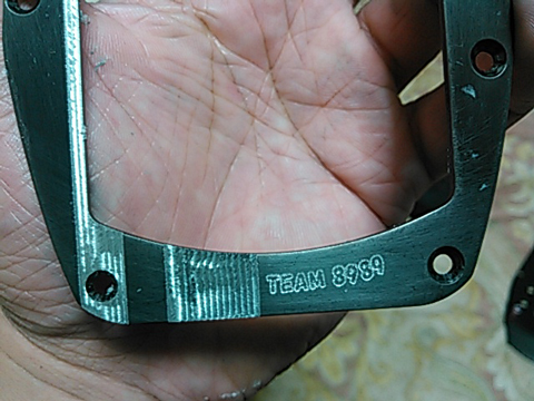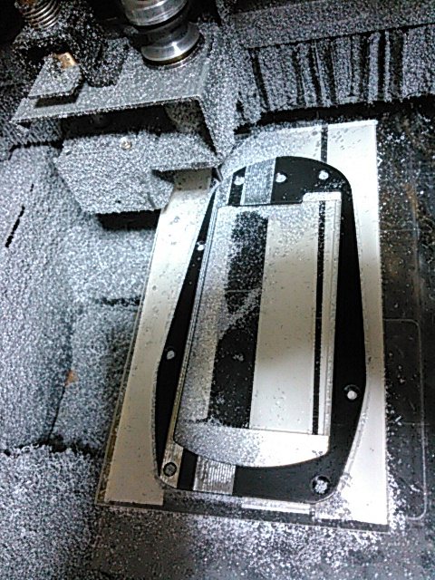 黒アルマイトしたパーツを治具にセットし2次加工しているところ。