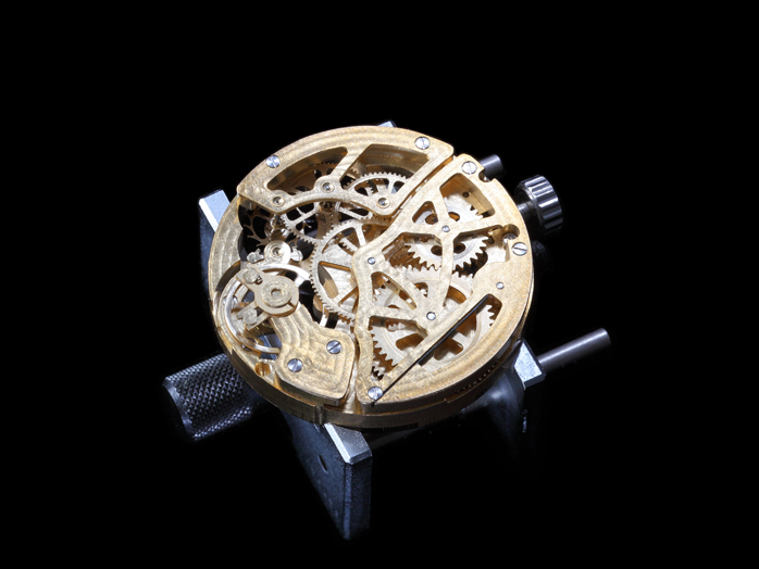 材質は真鍮です。すべてKitMill RD300で加工しました。歯車はΦ0.15のエンドミルで削り出しています。
