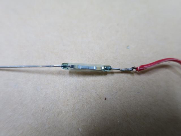スイッチ付けたくなかったので配線の間にリードスイッチを入れました。