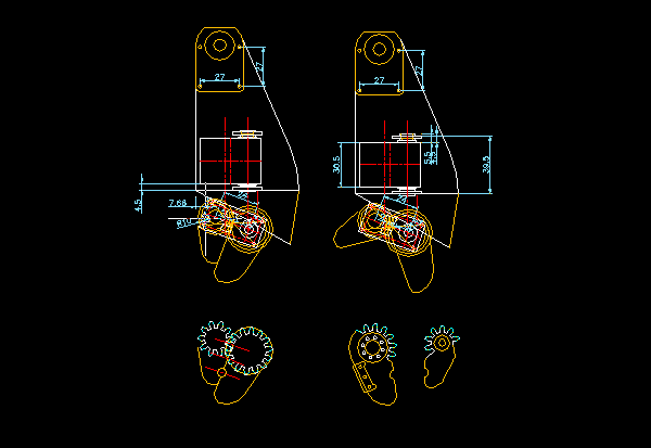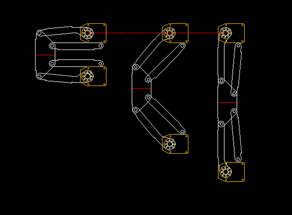 股、足首、腰のサーボモータには他の軸に比べ負荷が大きくモーション制作時にトルク不足を実感した。その問題を解決するため搖動スライダークランク機構を応用した長穴減速機構を制作した。減速比については1/2となるように設計を行った。