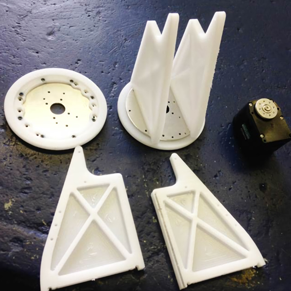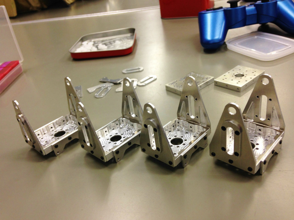 また、トルクが上がることでアルミフレームへの負担が増えることも考慮し、当初、A5052を使用していたが、材質をより剛性のあるA2017に変更した。材質を固くしたことで曲げ加工ができなくなったが、削りだし部品の側面にねじ穴を設けることで解決した。