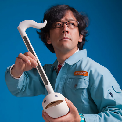 芸術ユニット「明和電機」をプロデュース。青い作業服を着用し作品を「製品」、ライブを「製品デモンストレーション」と呼ぶなど、日本の高度経済成長を支えた中小企業のスタイルで、様々なナンセンスマシーンを開発しライブや展覧会、商品開発など、国内のみならず広く海外でも発表。音符の形の電子楽器「オタマトーン」など制作多数。