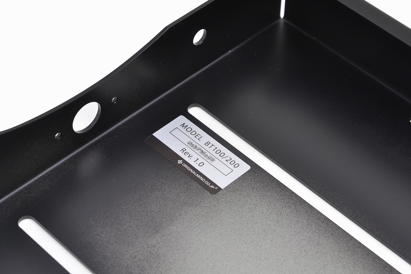 「KitMill BT100 / 200」のプロダクトシールは、ベースフレームの裏側に貼られています。