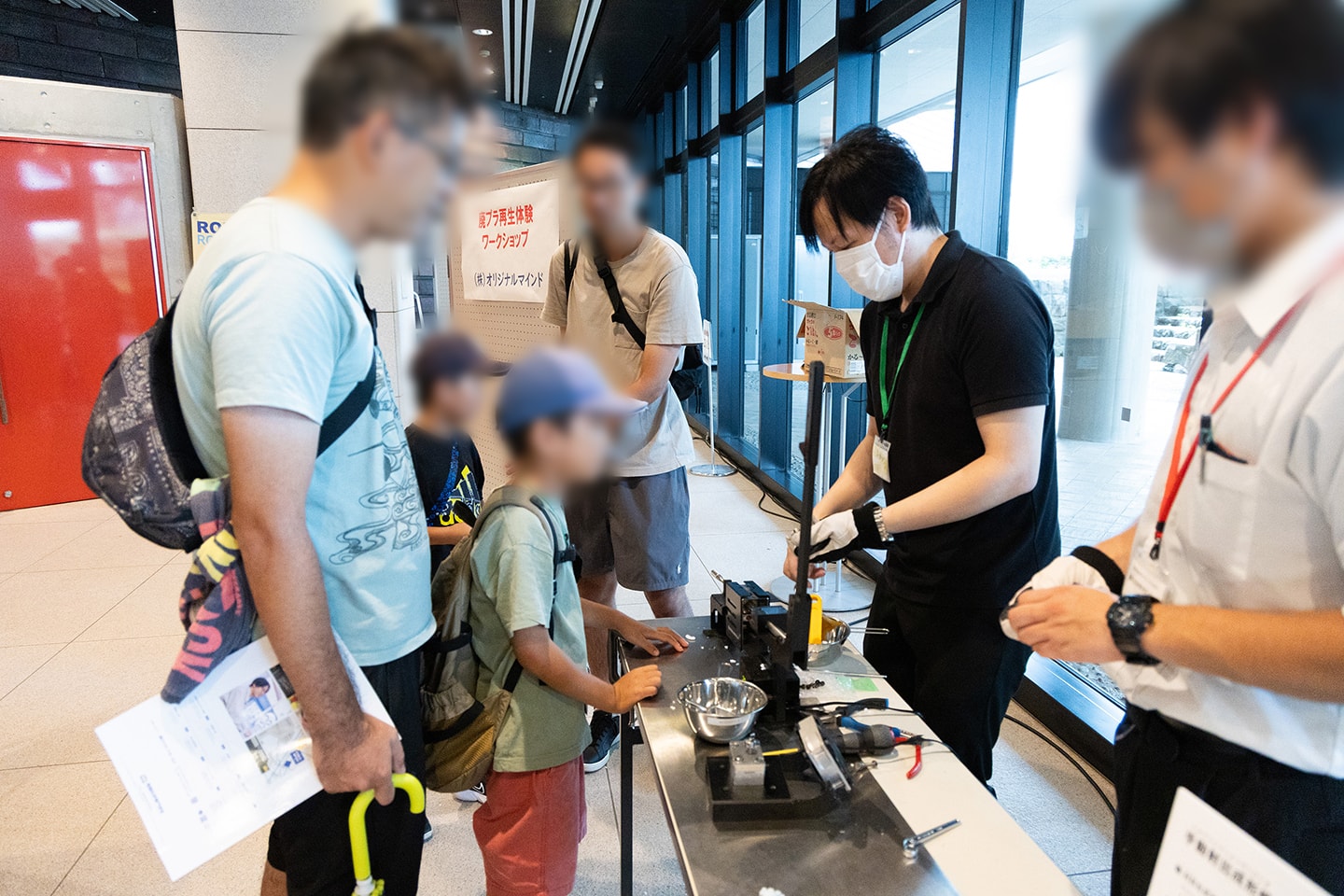 2024年9月22日(日)、神奈川県立青少年センター(横浜・紅葉ケ丘)で開催された「青少年のためのロボフェスタ2024」にて、「廃プラ再生体験ワークショップ」を実施しました。当日は300人を超える方が参加され、手動射出成形機「INARI M06」を使ってペットボトルキャップをロボットマグネットへとリサイクルする体験を楽しまれていました。さらに、卓上CNCフライス「KitMill CL100」の製品展示や、「KitMill」や「INARI」でつくったロボットパーツをはじめとする加工サンプルの展示にも多くの方が集まり、にぎわいを見せていました。