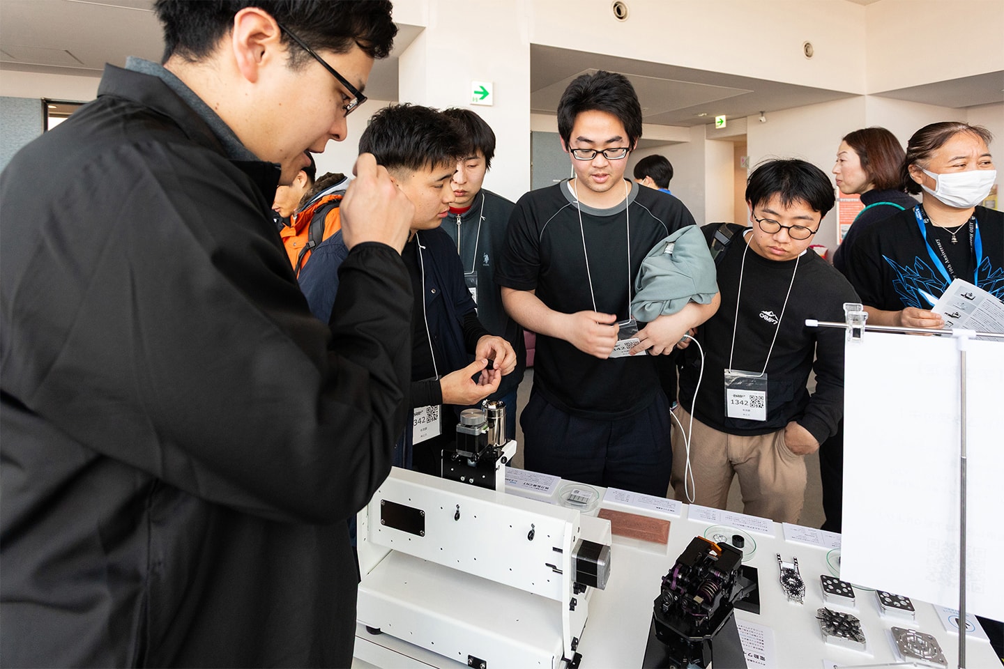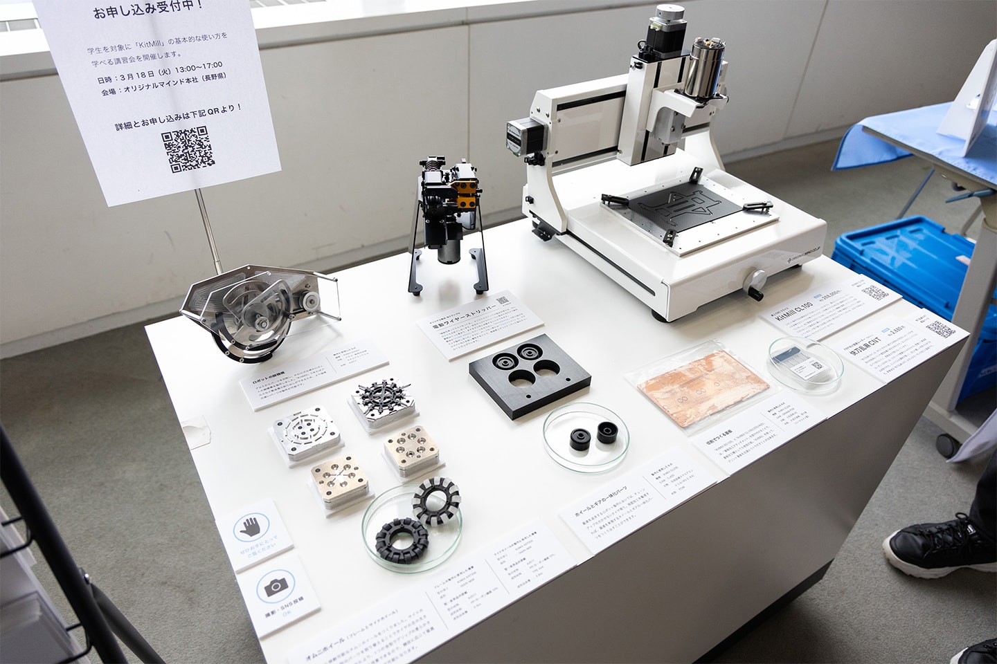 オリジナルマインドは、大会会場の厚木市商工会議所2階にて、協賛展示を行いました。当社ブースではロボット製作に広く活用されている「KitMill CL100」や、当社製品を使って製作したロボットパーツなどを展示しました。多くの選手の方が試合の合間を縫ってブースまで足を運んでくださり、大変盛況でした。ブースに訪れた方は、実際に当社製品で加工されたロボットパーツを手に取りながら、ワクワクとしたようすで展示をご覧になっていました。