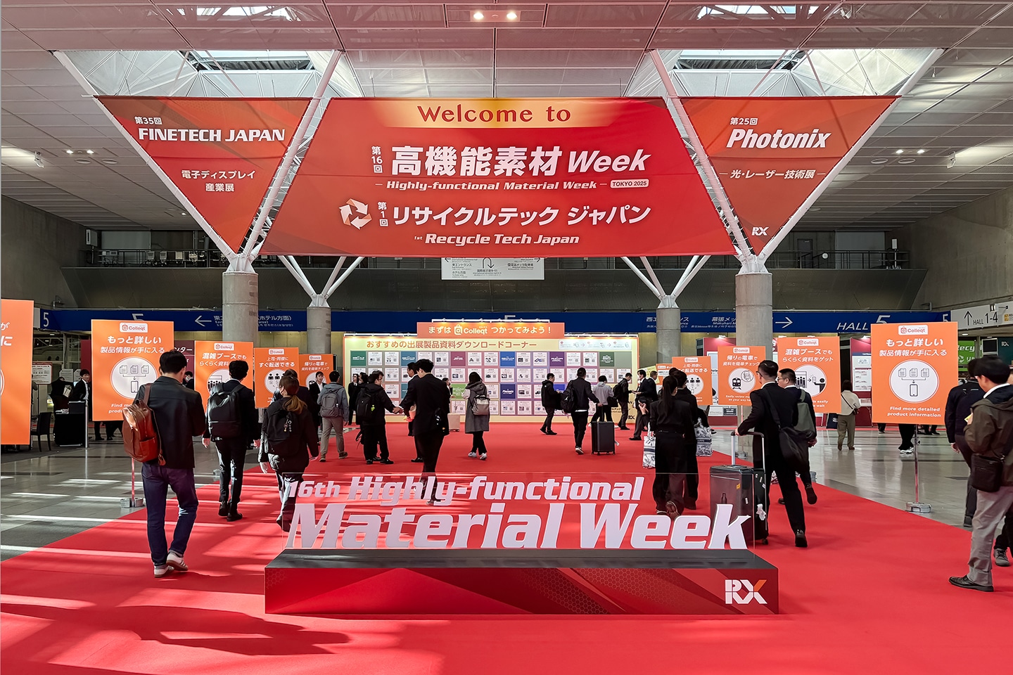 「高機能素材Week」は、先端素材の開発・加工・成形・評価に関する最新技術が集結する、世界最大規模の展示会です。「サステナブル マテリアル展」「高機能プラスチック展」「接着・接合 EXPO」など、素材の種類や加工技術に応じた複数の専門展で構成されており、ものづくりの最前線を支える技術が集まります。東京・大阪・名古屋でそれぞれ年 1 回ずつ開催されており、今回は東京での開催でした。