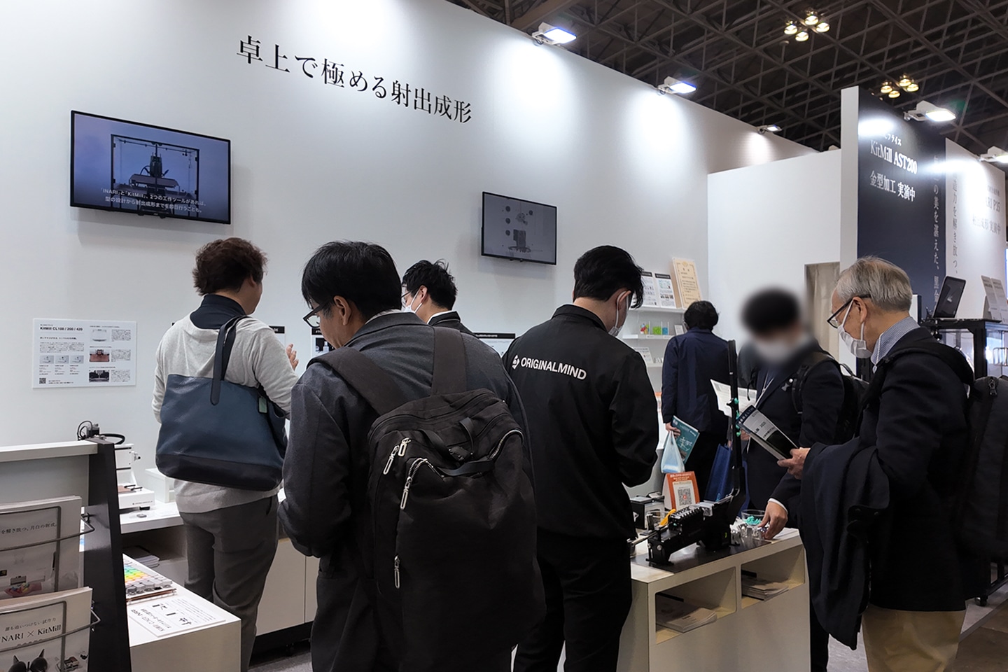 2025 年 5 月に開催された 大阪展での展示 に続き、今回も「卓上で極める射出成形」をメインテーマに掲げ、オリジナルマインドの卓上工作機械をセットでご紹介しました。各製品の展示と加工実演のほか、実際に製品を使って加工したサンプルをあわせて展示しました。