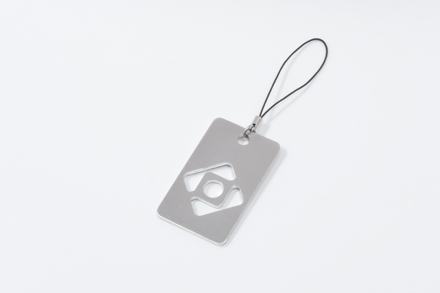 - 講習で製作する、オリジナルマインドのロゴが入ったアルミ製キーホルダー