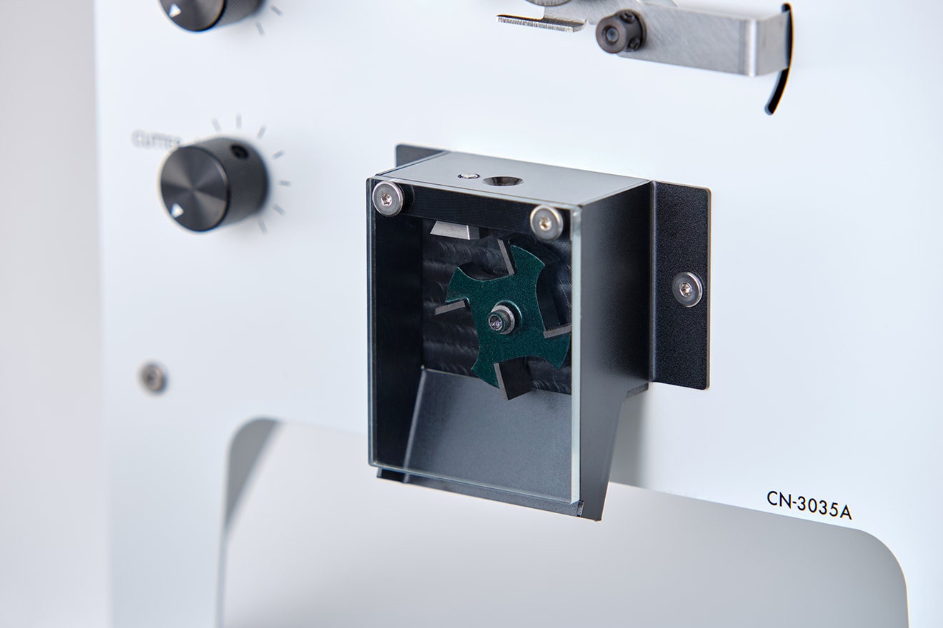 ストランドを切断するカッター部分には視認性に優れる透明の保護カバーを設け、安全性と使いやすさを両立しています。さらに、スクリューやカッターに過負荷がかかった際には、自動的に動作を停止する機能を標準搭載。故障や事故のリスクを未然に防ぎ、安全確保が求められる現場においても安心してお使いいただけます。