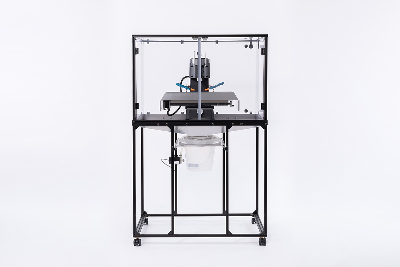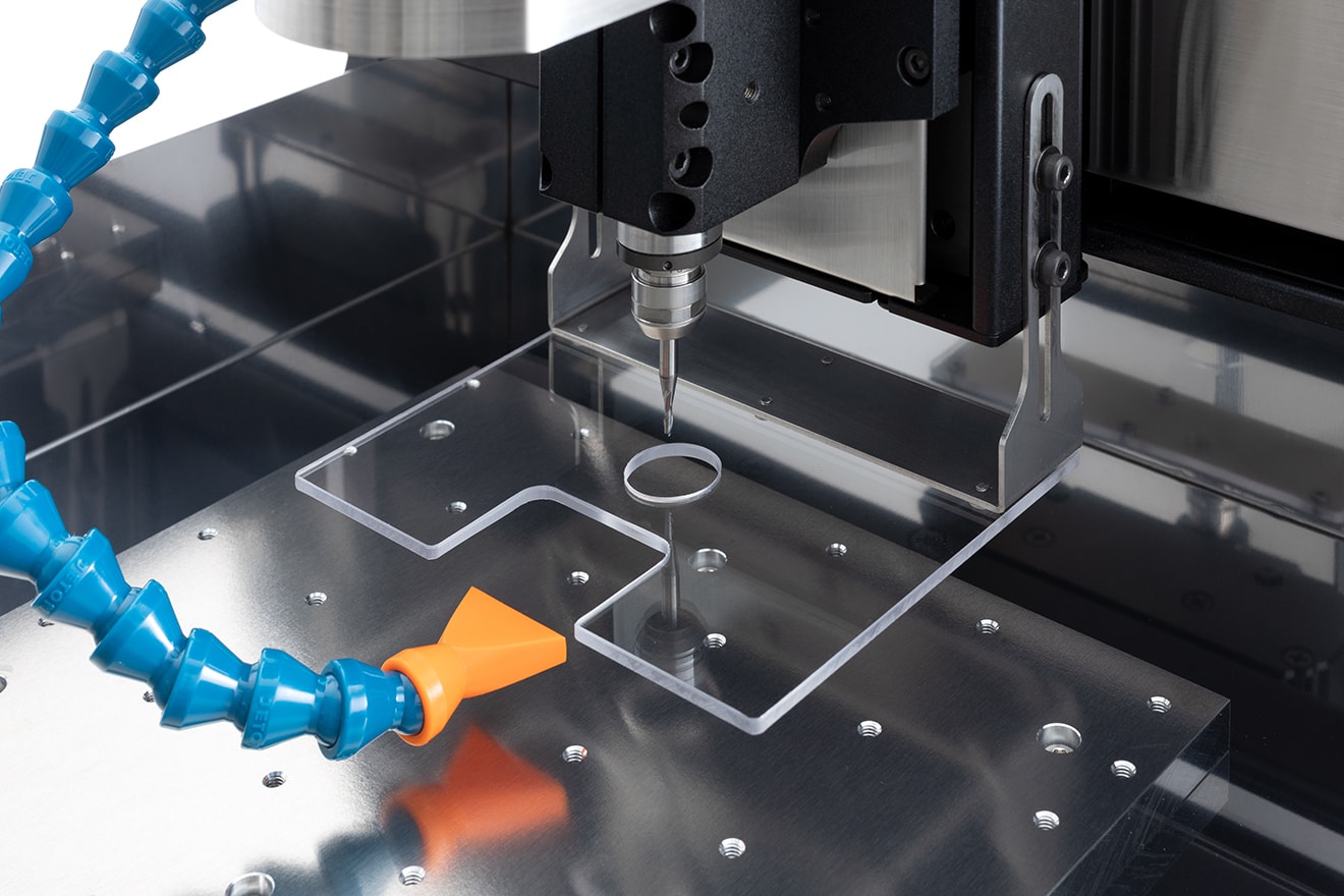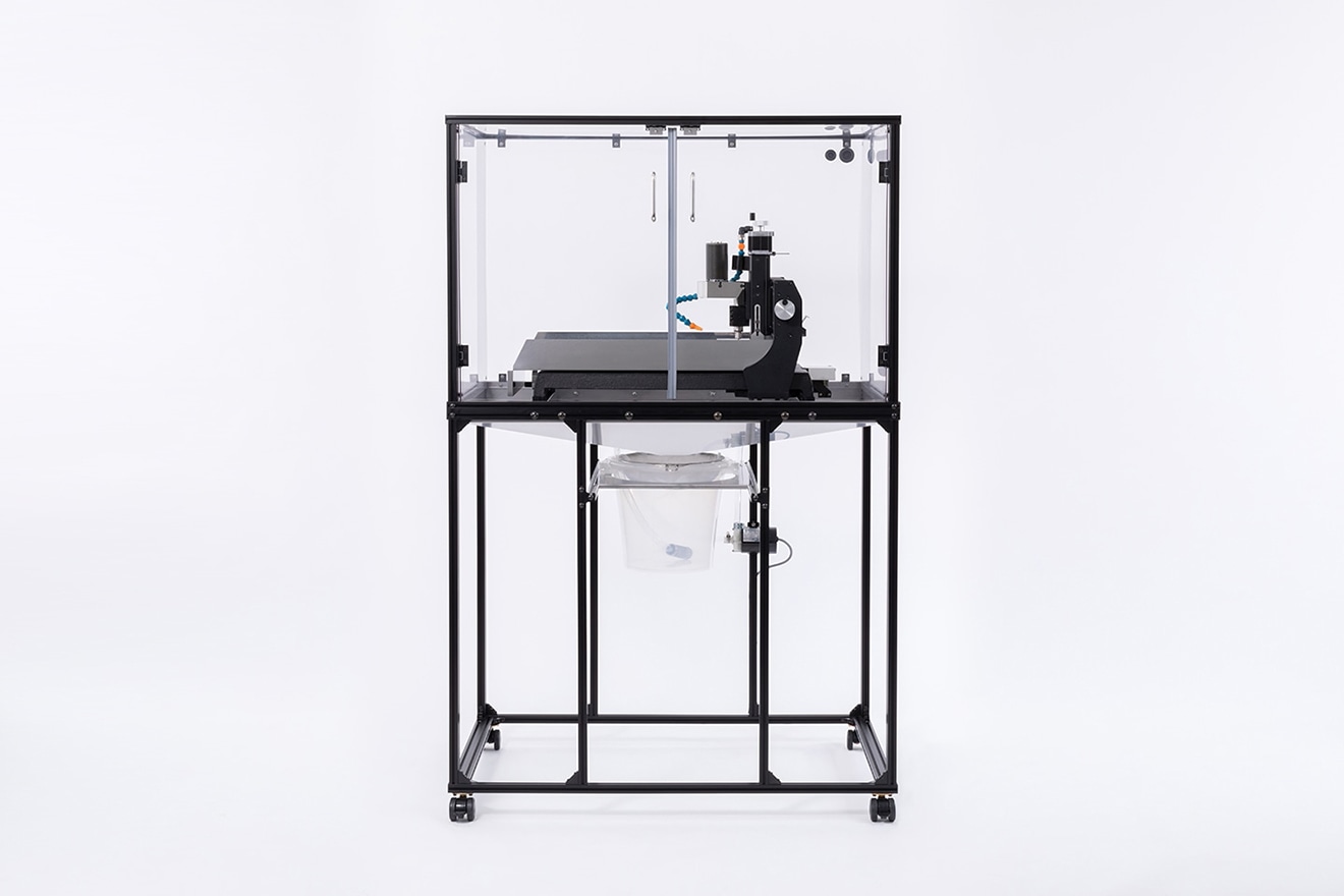 「KitMill」の切削時にクーラント(切削油)を供給して、加工精度を高めます。クーラントが切削中に発生する切りくずを排出し、被削材との摩擦やエンドミルの摩耗を軽減。冷却効果により材料の溶着も抑えます。また、透明なケースで覆うことでクーラントの飛散を防止しつつ、加工の様子を確認可能。そのうえ切削中に発生する切りくずが一箇所に集まるよう設計されているため、メンテナンスの負担を軽減します。機種に応じた3種展開でCNCフライスの性能を引き出し、ハイクオリティかつ快適な加工を実現します。