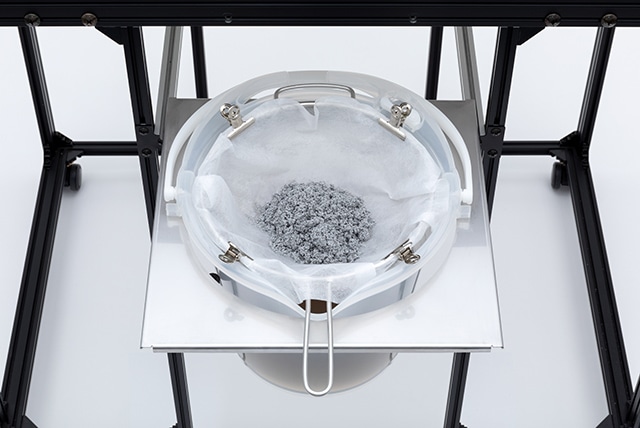 傾斜状の下部プレートは、切りくずとクーラントが一箇所に集まるように考慮された設計。ケース内の掃除や、切りくずの排出も手早く簡単に行うことができる。