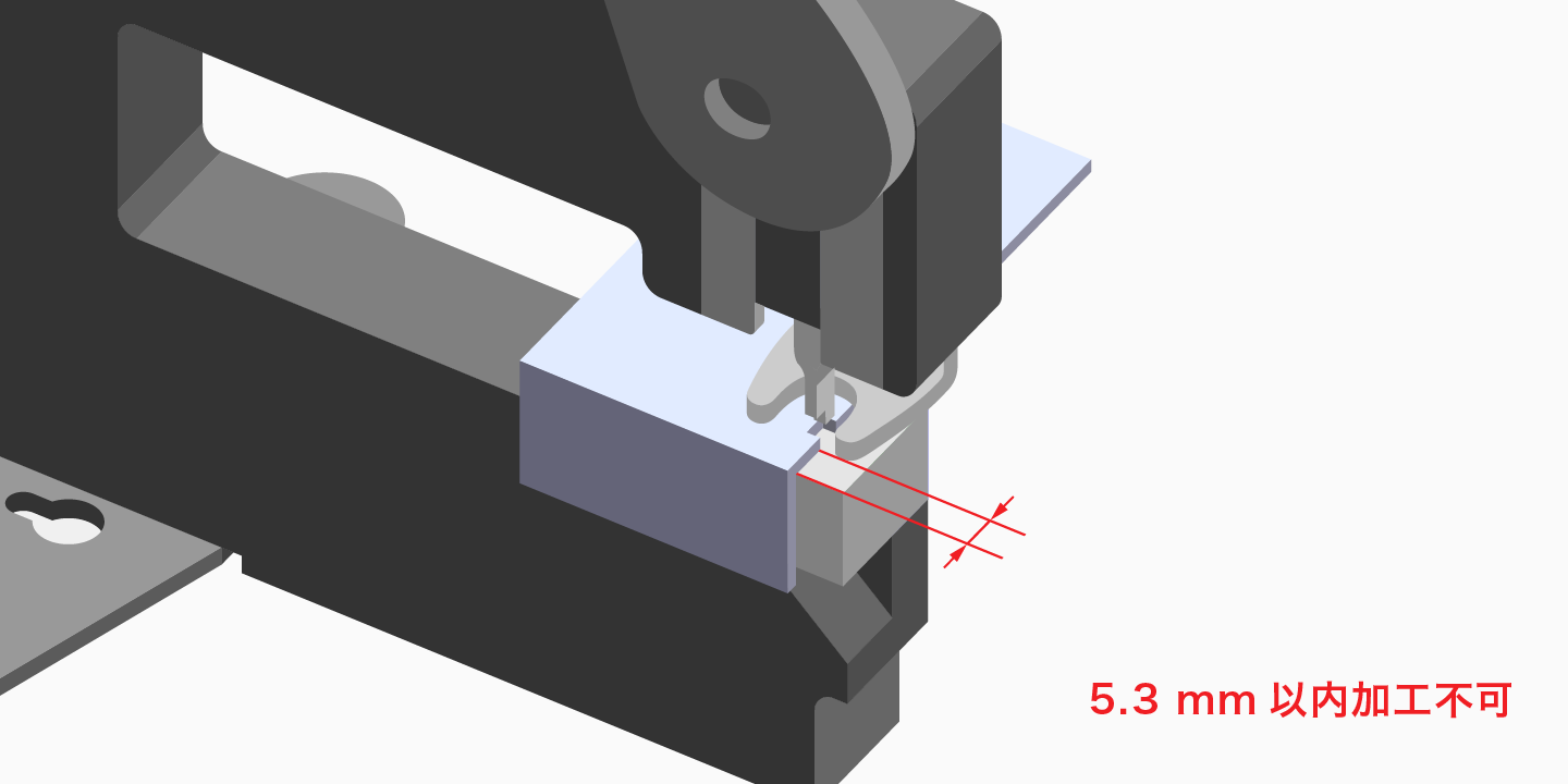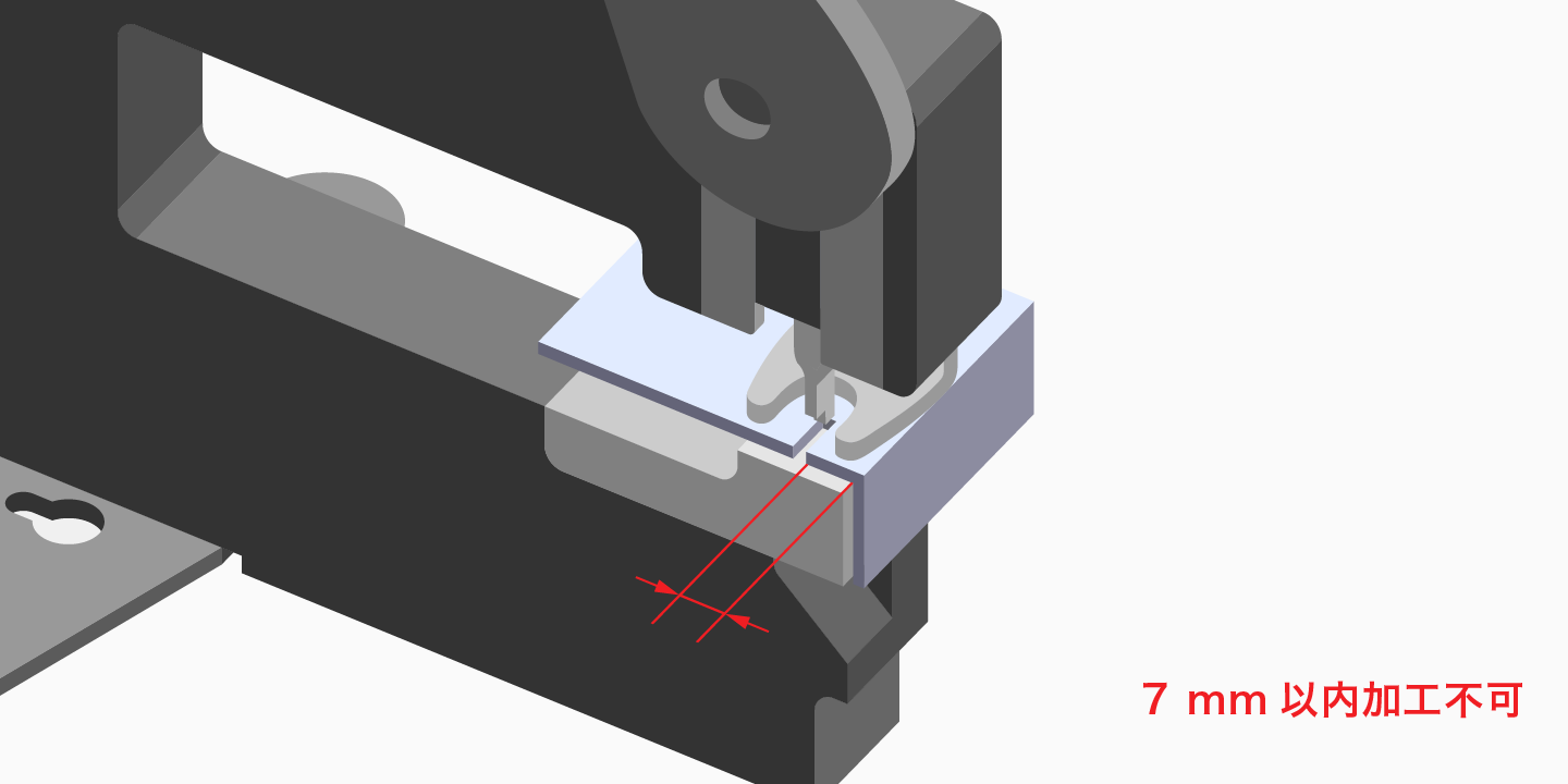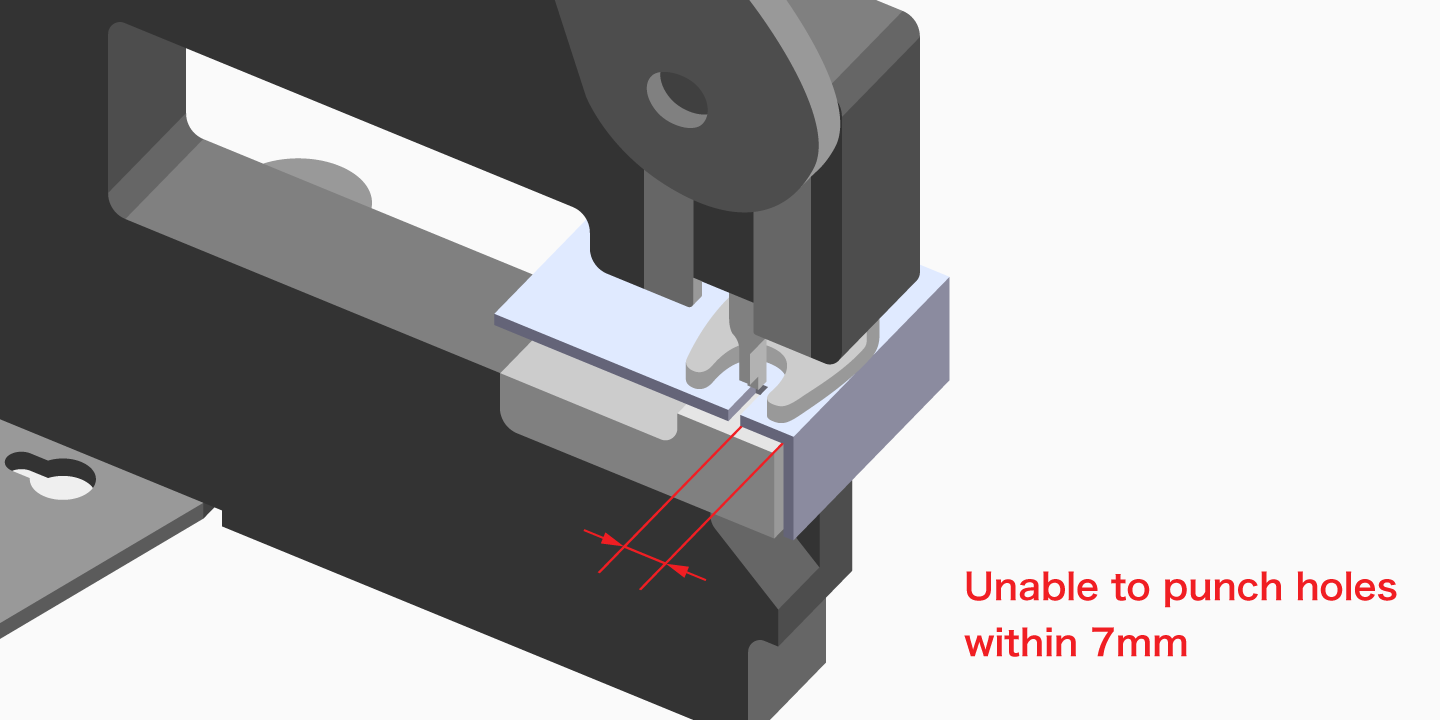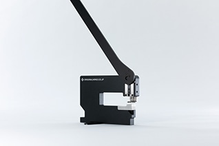 加工方法は、板を金型に載せてハンドルを下げるだけ。この作業で、穴あけや追い抜きも自由自在。