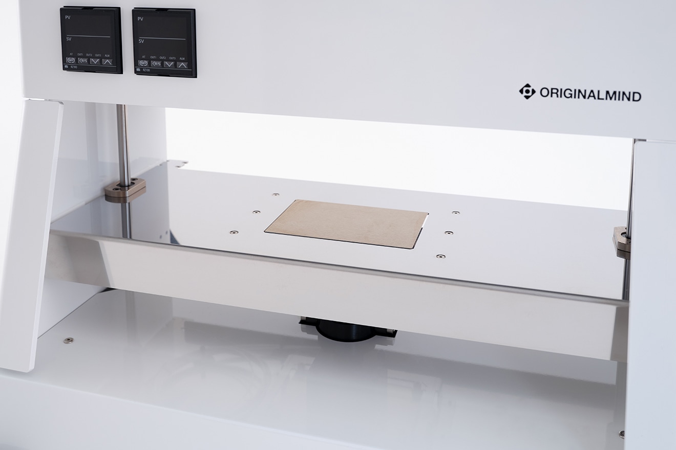 卓上サイズのコンパクトな機体ながら、テーブルには 400mm × 183mm × 80mm もの型設置エリアを確保。大きな成形品をつくることができるため、デザインの幅が大幅に広がります。さらに、型の予熱機能を完備し、細やかな成形条件の設定が可能で高品質な成形が行えます。
