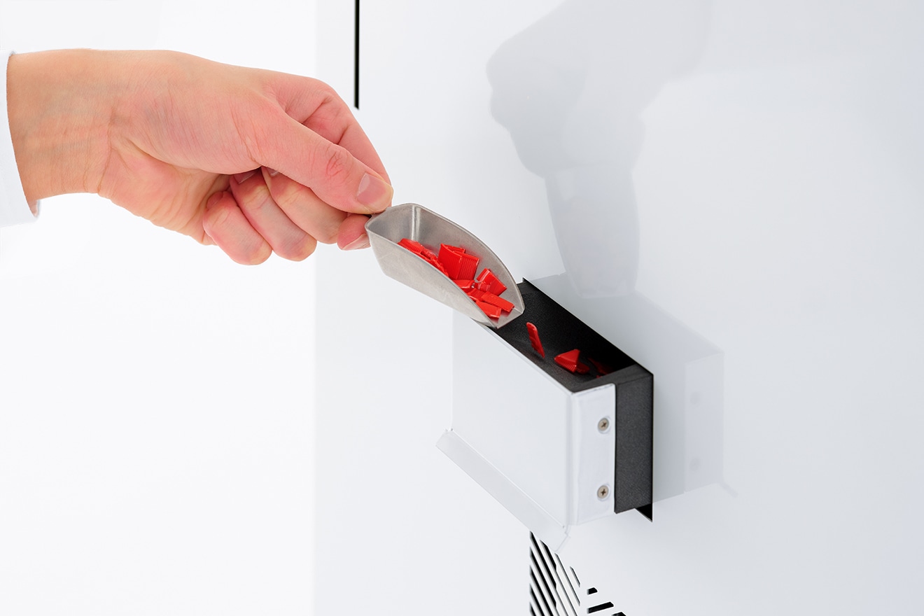 一般的な大型の射出成形機に比べて構造がシンプルなので、材料投入時の大きなトラブルを心配する必要がありません。フィラー入り材料からペットボトルキャップのような廃プラスチックまで、様々な材料を気軽に投入いただけます。新素材の成形テストにも最適です。