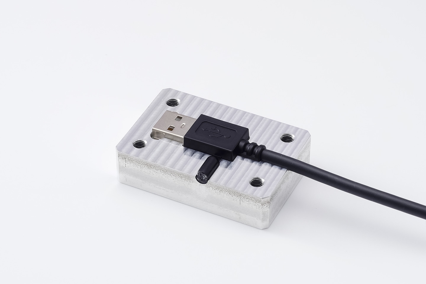 型をねじで固定し、INARIで溶けた材料をUSBケーブルの周りに充填します。