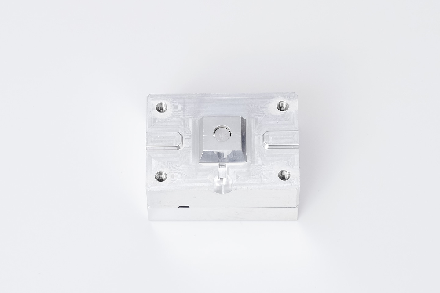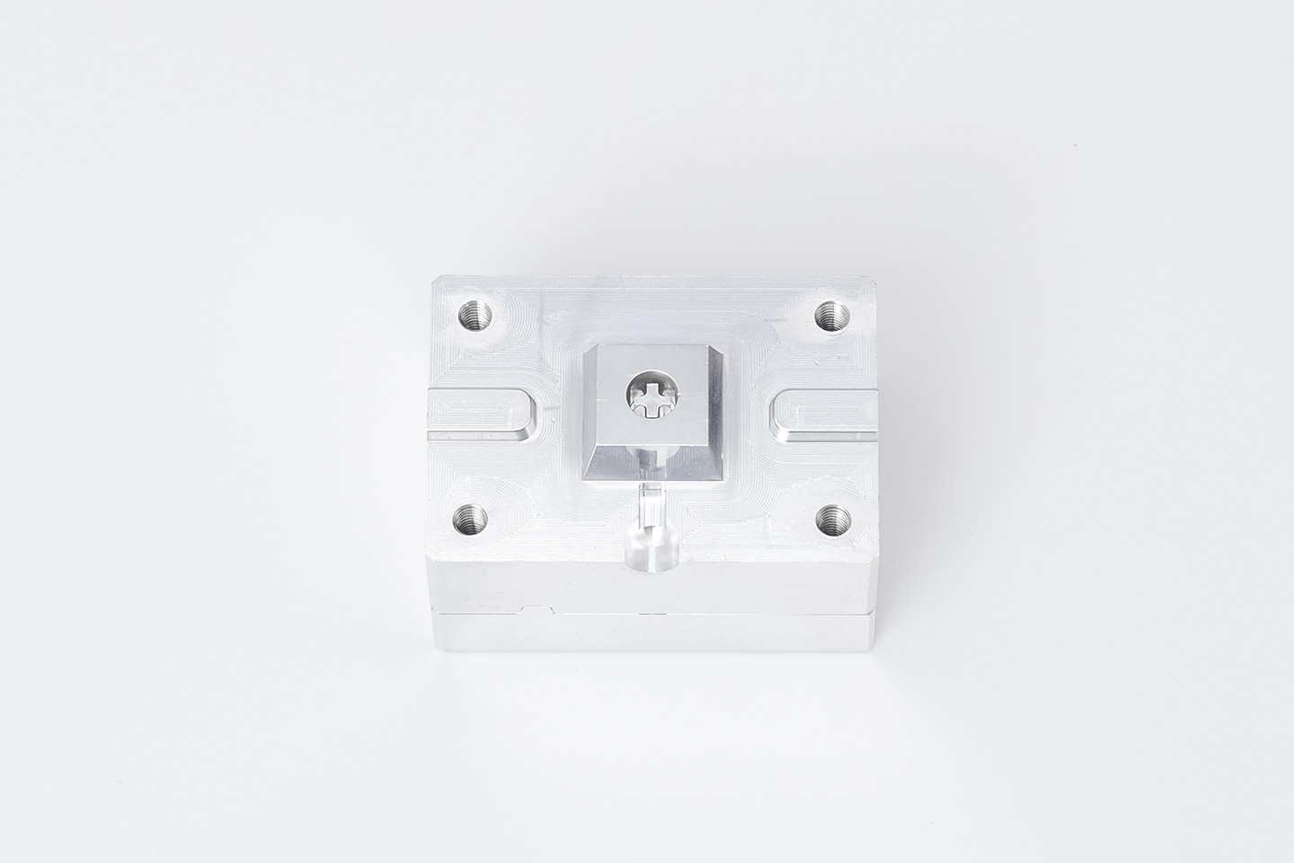 成形時に使用するプレートには、成形材料をキーキャップの取り付け部分(十字の部分)の奥まで充填するために空気の抜け道(エアベント)を設けてあります。