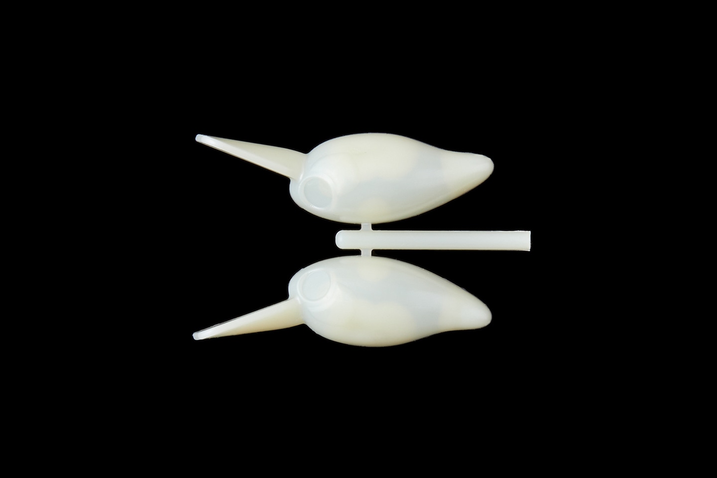 実際に釣りに使用できるように目や針、重りを取り付けて組み立てられます。