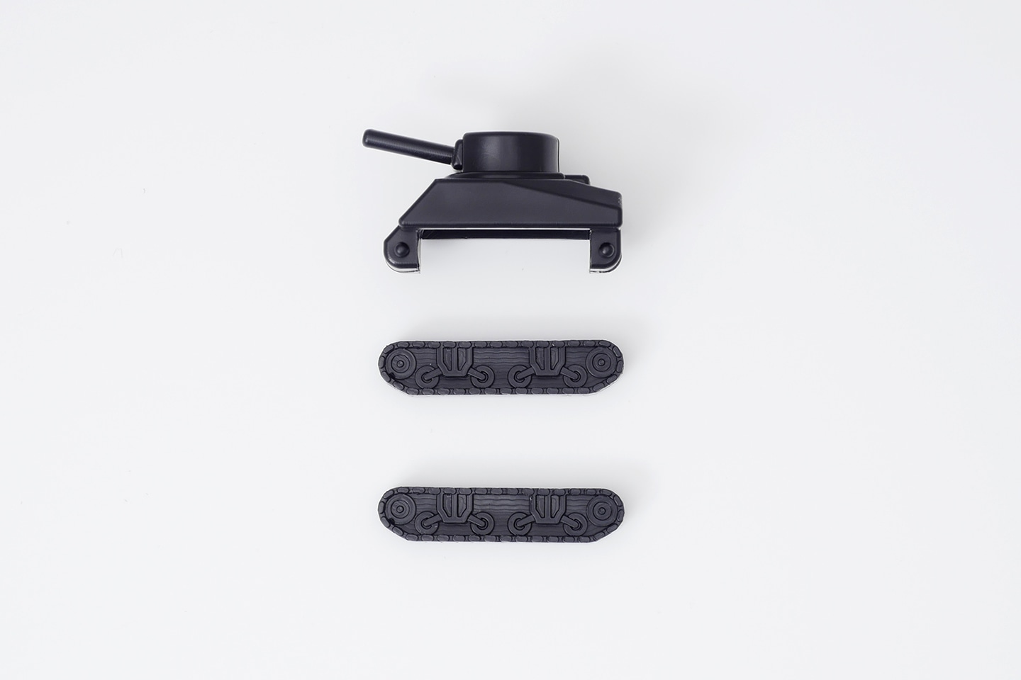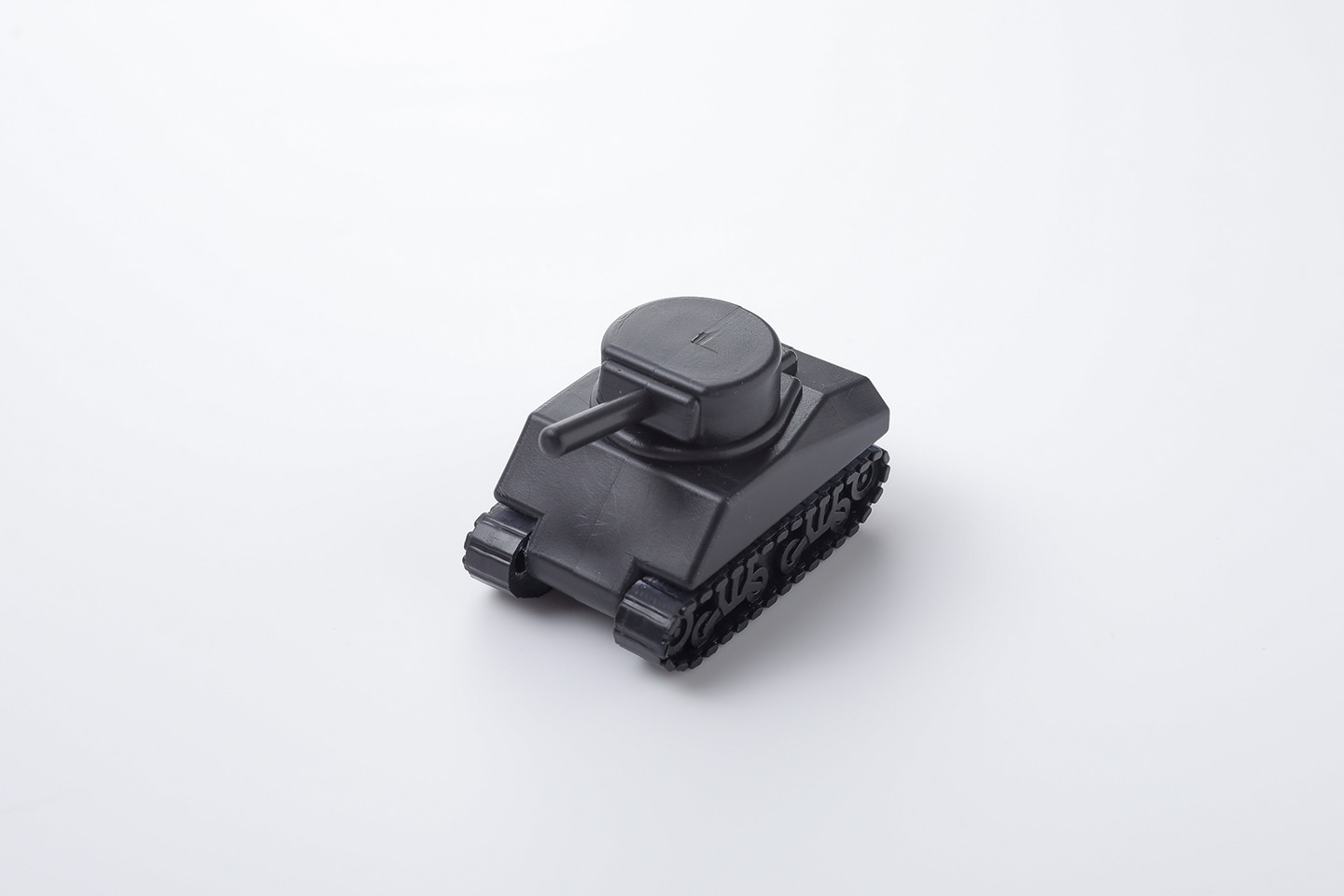 入れ子を使って成形した戦車です。入れ子を使えばアンダーカットのある形状も成形できます。