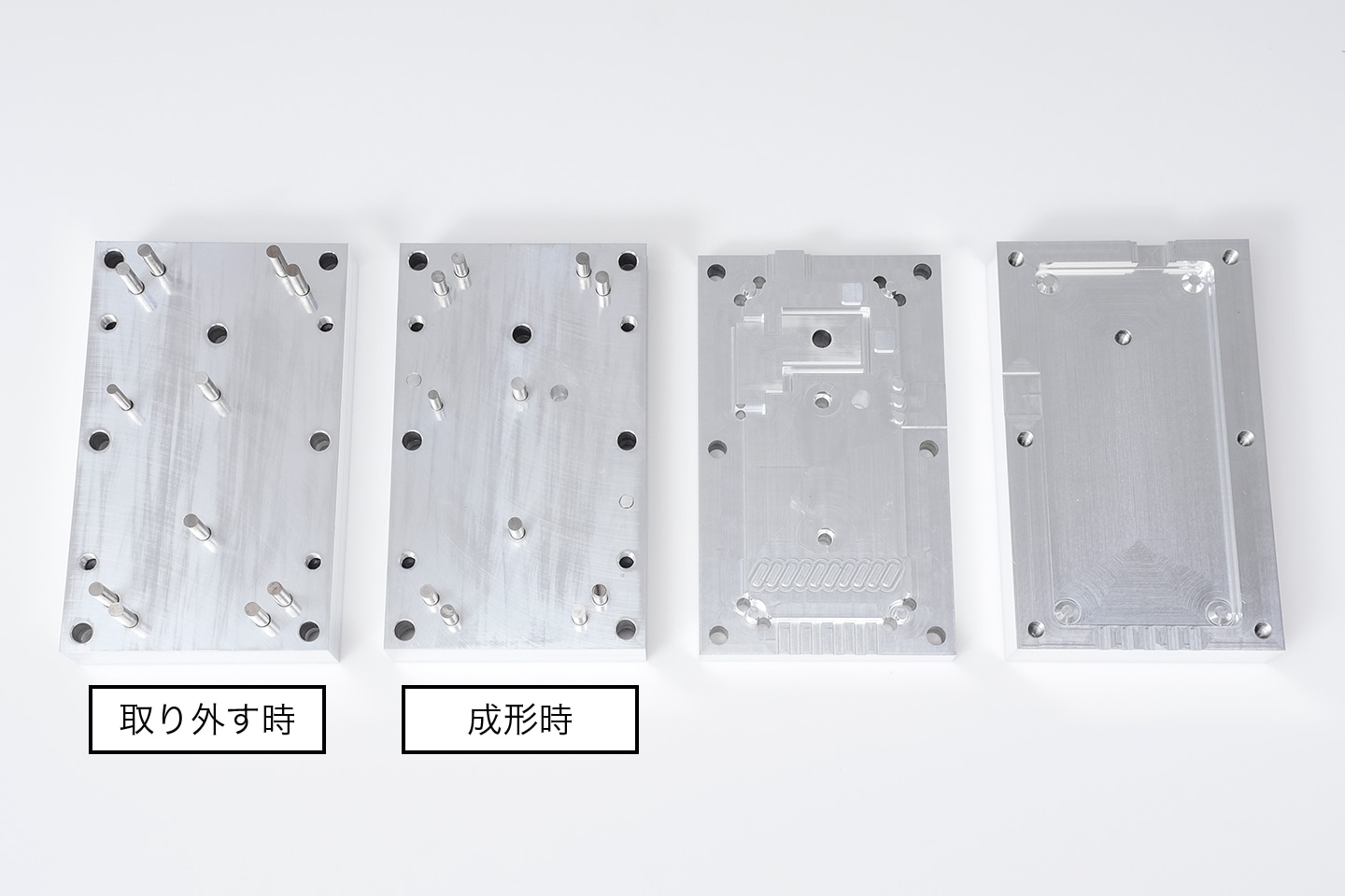 成形時と成形品を取り外す時とで使用するプレートが異なります。