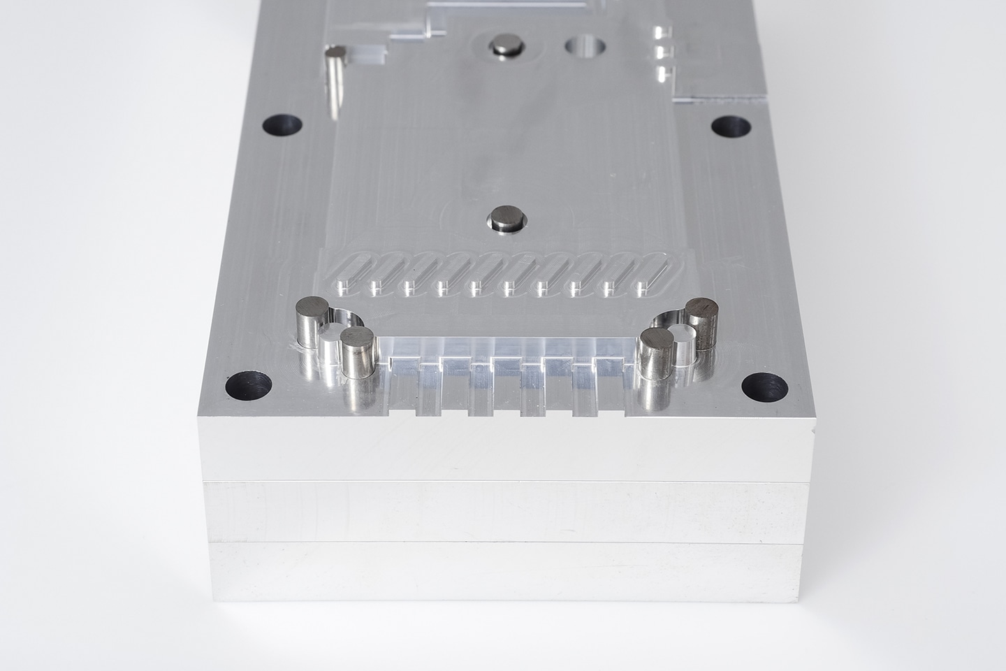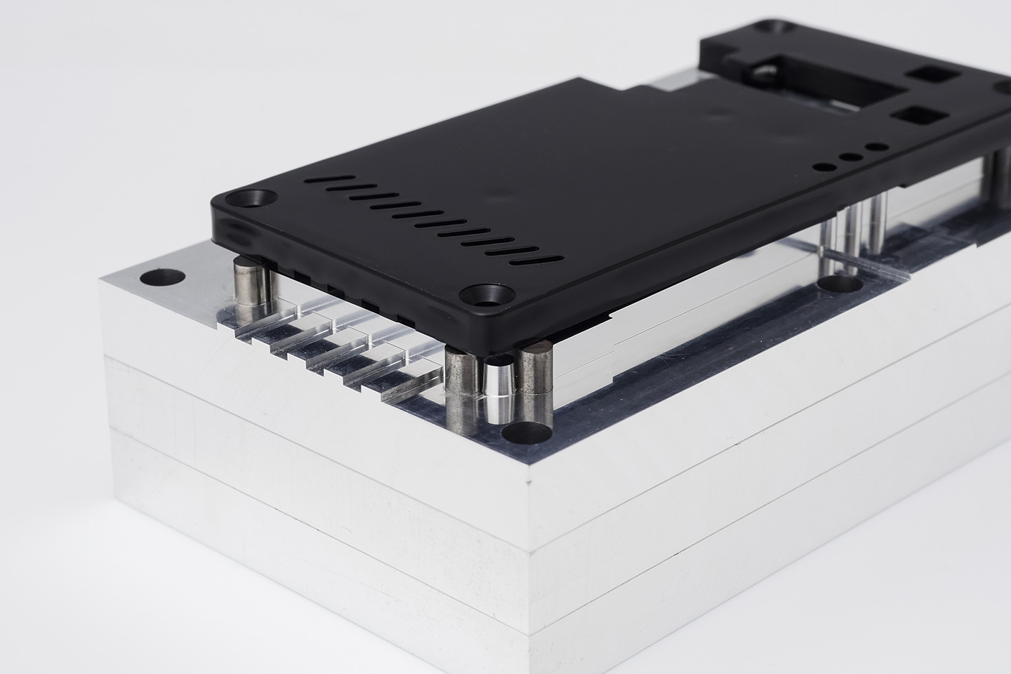 成形時はピンの位置がツライチになるプレートと組み合わせます。