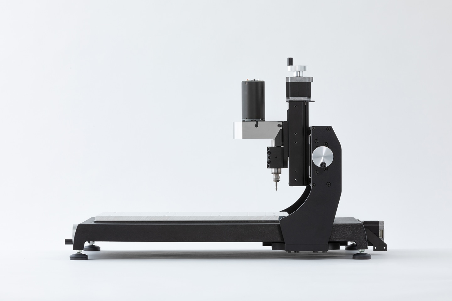 減衰性の高い鋳鉄や肉厚のアルミ押し出し材をフレームに採用し、卓上型としては類を見ないほどの本体剛性を実現。加工時の安心感と心地よい切削音が、創造への意欲を高めてくれる。