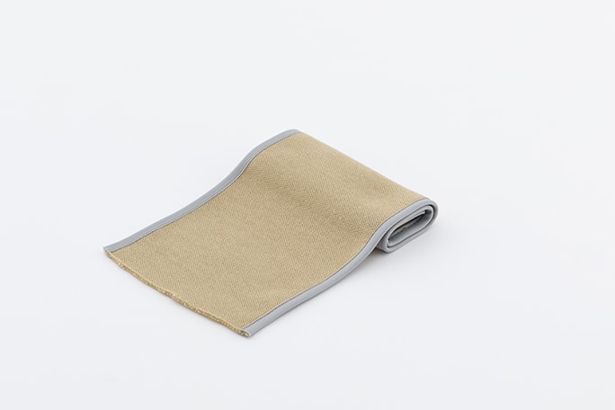 防弾ベストや宇宙服にも使われている、鉄よりも強度の高いスーパー繊維を伸縮性のあるニット編みにしたキズ防止シートが付属。折り曲げの際に生じる強い引っ張りや摩耗に長く耐えることができ、長期間の使用が可能。テープなどを重ね張りするよりも手軽で、粘着物の残留による材料やダイのベタつきも防止する。