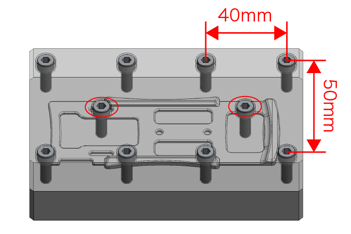 型締め用ねじの取付ピッチは50mm以内で製造いたします。