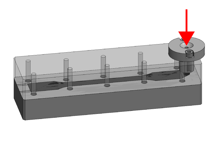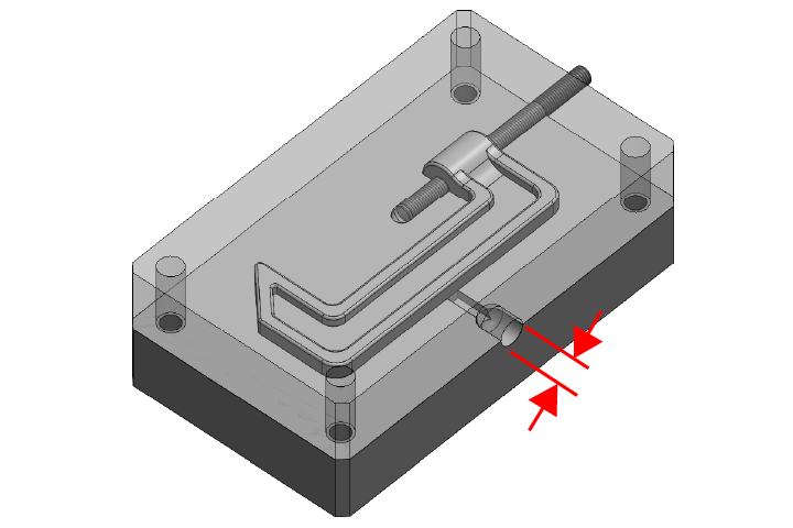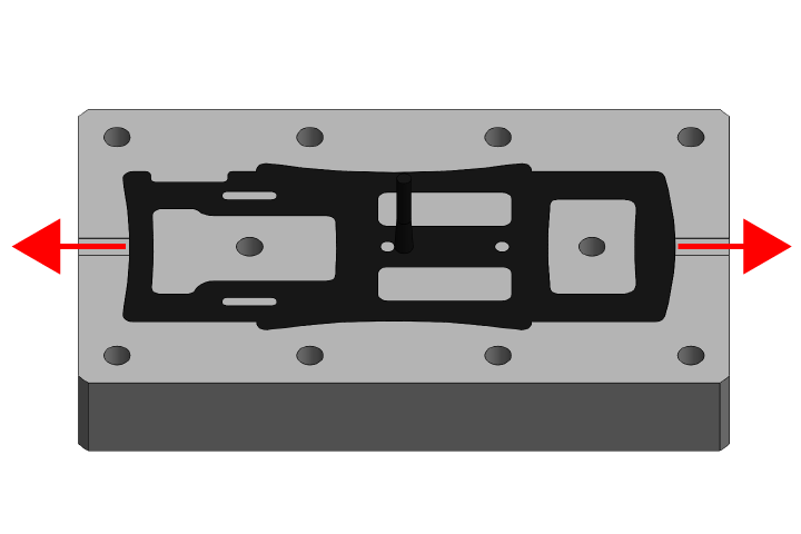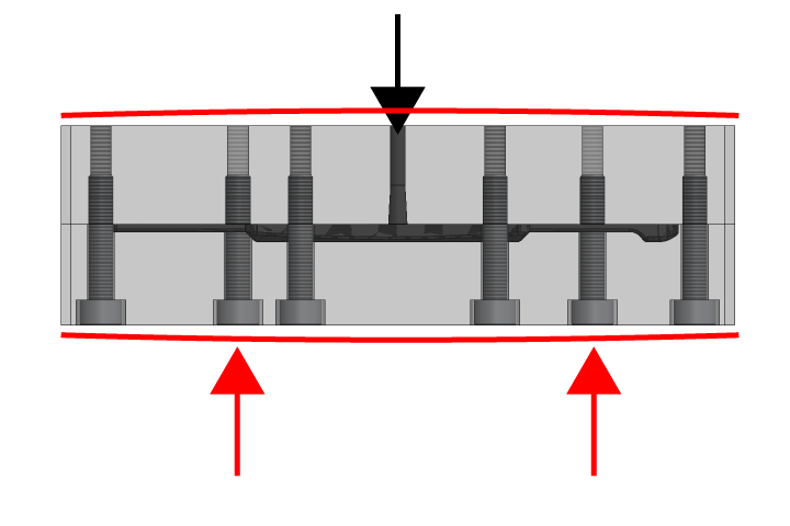 投影面積の大きいモデルの場合にも中央付近に型締め用ねじを設置することができると、成形圧力による膨らみをある程度抑制することが可能です。