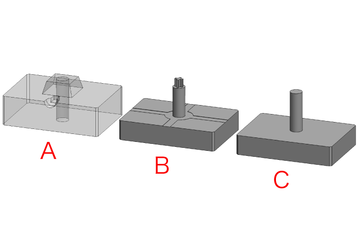 この場合は成型品を確実に取り外すために、入れ子と押出プレートをご提案する場合があります。
