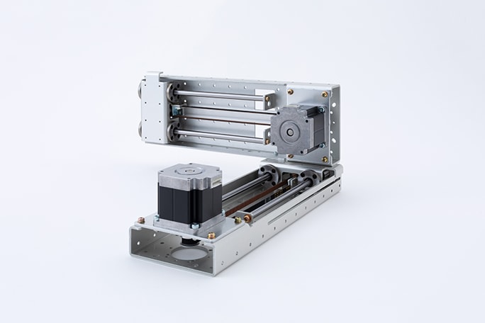 各社のステッピングモーターを取り付けることができ、オプションでDCモーターも取り付けが可能。本製品を2つ組み合わせ、X-Y構造として用いるなど、拡張性に優れた扱いやすい構成。2003年の発売以来、多くの学校や企業で機械制御の教材として長年愛用されているロングセラー製品。