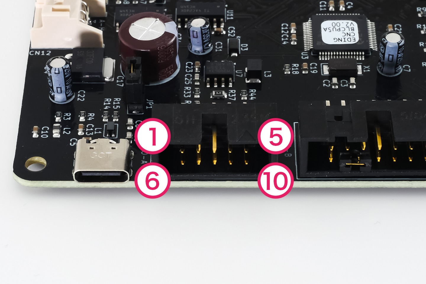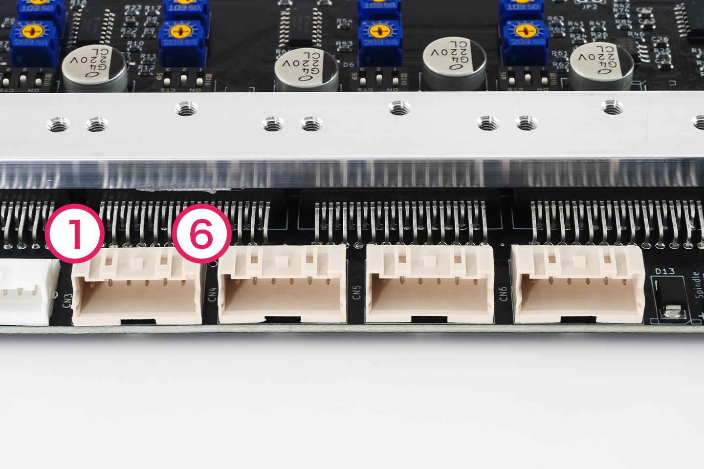 コネクタのピン番号は、上図の左から 1、2、3、4、5、6 です。