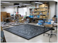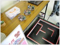 訪問させていただいた日は「マイクロマウス」の大会当日。また、文化祭の展示に出られているということもあり、残念ながら部屋には人影がほとんどなかった。そんな中、出迎えてくれたのはとても大きなコース。...と、こちらも見覚えのあるHAKU。