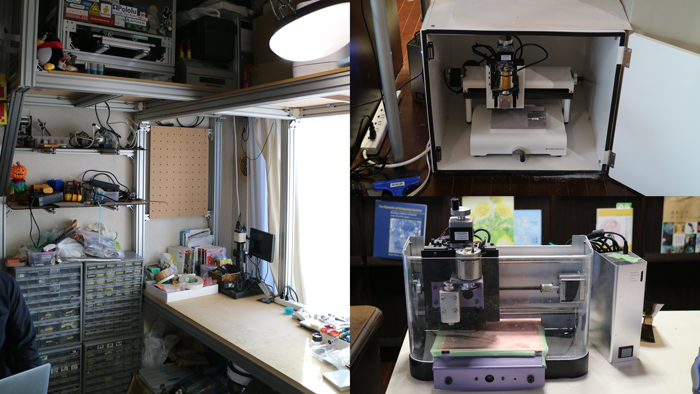 株式会社鳥人間のFabオフィスがあるのは、秋葉原駅から徒歩10分程度の場所だ。秋葉原にオフィスを構えたのは久川さんいわく「会社近くに大きな倉庫を持っているようなものだから」という理由から。オフィス自体も当社のKitMill CIP100とKitMill Qt100をはじめ、様々な工作機械や設備環境を整えて小さなファクトリーのようにつくられていた。ご自身の人脈のネットワークや、立地環境などを最大限に活かしてものづくりを営む久川さん、その自由な生き方と独創的なアイデンティティに触れてきた。