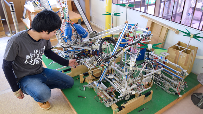 実際に作製したロボットを見せてもらった。こちらは「NHK大学ロボコン2013」で東京大学を破り優勝した機体だ。東京大学との決勝戦は互いにベストを尽くした近年まれに見る戦いとなった。また同年に行なわれたロボコンの世界大会「ABUロボコン」に出場し、各国の強豪たちと相対した。ABUロボコンでは、マシントラブルや競技コートの材質の違いに苦戦を強いられたようだ。そんな状況の中、選手たちは諦めずに全力で問題解決に取り組んだ。奮闘の末、見事優勝し世界一に輝いた。