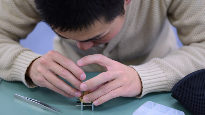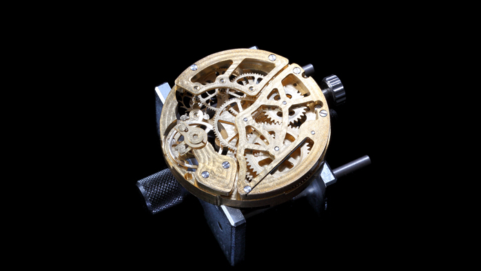 コンセプトムービーでご協力いただいた、金沢工業大学の皆さんにお会いしてきた! < クリエイターたち ~活用事例~トップ > どこから見ても美しい!!誰が見ても惹かれてしまう3軸トゥールビヨンの置き時計。