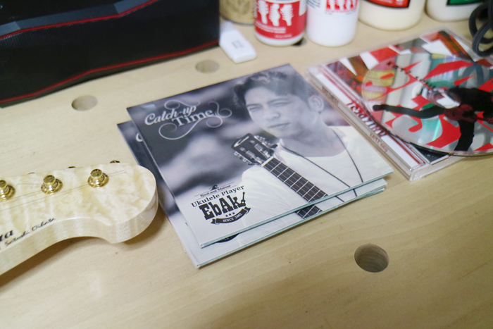 EbAkさんが最近送ってきてくれたというCD。アーティストに納品した楽器がこんどはCDになって返ってくるとは、なんて素敵なのだろう。しかもジャケットには、oihataブランドのネームが入ったウクレレが写っている。