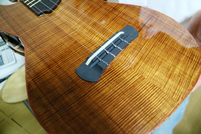 尾伊端さんはそこまで徹底的に素材にこだわった上で、作業時間をたっぷりかけて丹念に丁寧に、心を込めてウクレレをつくっている。このため、ウクレレを1本つくるのに2か月はかかる。工程をうまくオーバーラップさせても1か月に2本しかできないそうだ。だからこそ尾伊端さんのウクレレは、音も見た目も最高に美しく圧倒的なオーラを放っている。これが著名なアーティストたちが尾伊端さんのつくるウクレレを愛してやまない理由なのだ。