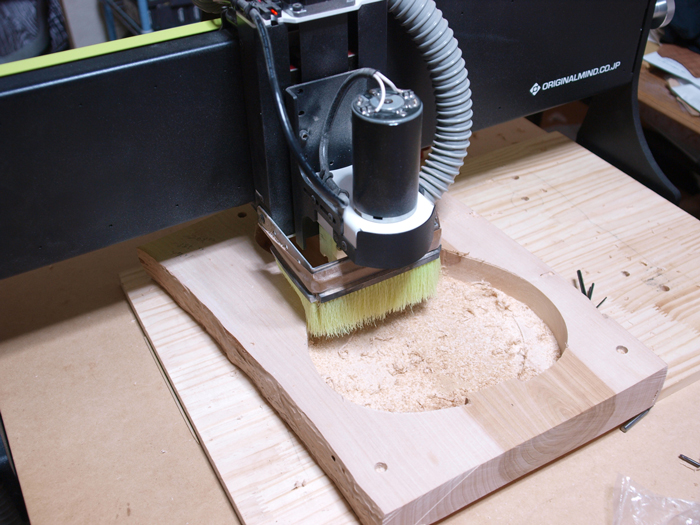 KitMillシリーズのいいところは「この価格帯ではCNCコントローラ及びCNCソフトが他社に比し各段に安定しているところにある。」と尾伊端さんは言う。「汎用パソコンでCNCを動かす場合、ステッピングモータのドライバなどに優秀なチップを使用してもパソコンからコードを送り出すスピードが安定していないためCNCの動きがおかしくなり切削に失敗することがある。Mach3などのCNCソフトの場合、日常的にインターネットにつながっているパソコンではバックグランドでなにかしらのソフトが動いているので使用することができない。故にCNCのみに使う別のパソコンが必要になる。しかも未だにパラレルポート接続のCNCコントローラが多いが、今時そのようなパソコンを入手することは困難だ。KitMillシリーズは、パスのコードをパソコンからコントローラの専用基板に吐き出してから処理されるため、普段使用しているパソコンから動かしても全く問題ないばかりかCNCを動かしている最中にもメールを打っても動作がおかしくなることがない。これは当たり前のようで実は画期的なことだと思っています。」と語ってくれた。