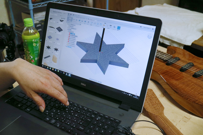 そんな素晴らしいウクレレをつくる尾伊端さんだが、その作製方法はなんと全て独学によるものだそうだ。一般的に楽器職人は、楽器作製の専門学校を経て楽器メーカーに就職、もしくは、有名な作製家へ弟子入りするなどして腕を磨いて独立することが多く、尾伊端さんのように全くの独学でビルダーになった人はかなり稀だ。でもだからこそ既成概念に囚われることなく音の面から楽器構造に新たなアプローチをかけたり、楽器強度の面から楽器構造に斬新な仕組みを取り入れたり試行錯誤で至極の弦楽器をつくることができたそうだ。そして今回、尾伊端さんは当社のCNC導入をしてくださったが、多くのビルダーは、手作業による加工のみで、CNCを導入しているところは見たことがないという。メーカーであっても導入しているところはあまり多くないらしい。このため、誰もCNCによる楽器の作製方法について教えてはくれない。だからこれも独学で突き進んでいるのだ。