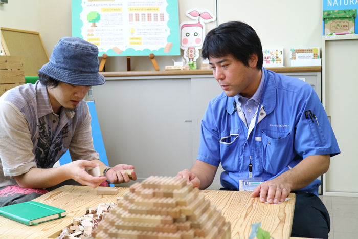 同社は昭和55年より創業、以降は地元大手企業の協力工場として事業を営んでた老舗企業だ。しかし、生産拠点の海外シフトなどで仕事が減っていくのではという危機感から、新たな事業を模索していたという。そこで、地元米沢の豊富な木材資源を活用して何か新しいことができないかと考え始めた(当時豊富な木材があるにも関わらずそれを活用している事業は地元にほとんどなかったのだという)。もくロックはそうした着想から、同社桒原社長の発案によって、2010年頃に責任者である同社山岸さんに託された開発事業であった。