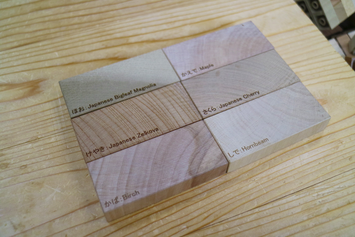 こうした色の違いが生まれているのには理由が二つある。一つ目はこれまでお伝えしてきた通り、無垢の木材だから同じ木でも箇所によって色が違うのである。さらに、二つ目の理由は、ほお、けやき、かば、しで、かえで、さくら、と地元山形で育った六種類もの木を使用しているということにある。普通生活している中で「木って茶色でしょ??」程度の認識でしかいなかった私はこの精細な色彩に目を奪われてしまった。