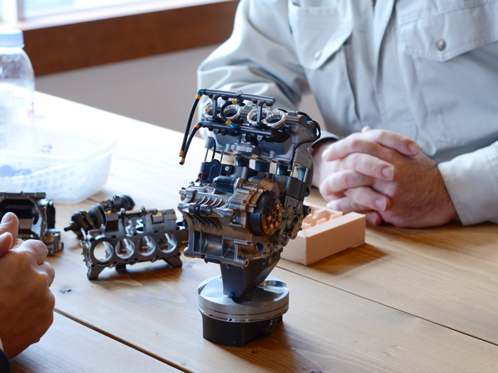 今回の取材でも木川さんは「YZR-M1のエンジンは現状日本最高峰のメカだと思った。だからこそ、その内部機構にすごく興味があり、それを知りたいと思った。」と製作動機を語ってくれた。その「中身」に対する一貫した深い興味と愛情っぷりが今年もとんでもない造形作品をつくりだしてしまった。