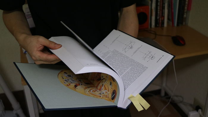 完吾さんは、どちらかというと派手なタイプではないし、進んでメディアに出たがるような感じの印象はない方であった。工房には、カラクリや時計づくりに関する本だけがシンプルに並べられ、作業机と機材類、他には制作途中の機構部品がたくさん置かれてるだけで「つくることが本当に好きなんだぁ」と工房の様子からもそう感じさせられたのだ。取材中も自ら進んで自己アピールするようなそぶりは全くなく、ものづくりのことになると「ドキッ」とさせられる核心的なことを言葉少なめにバシッ!と発してくれるような方であった。本について触れると、全部英語で書かれている愛読書を持ってきて「作品作りにどうしても必要で和訳しながら読んだんです。」と話してくた。